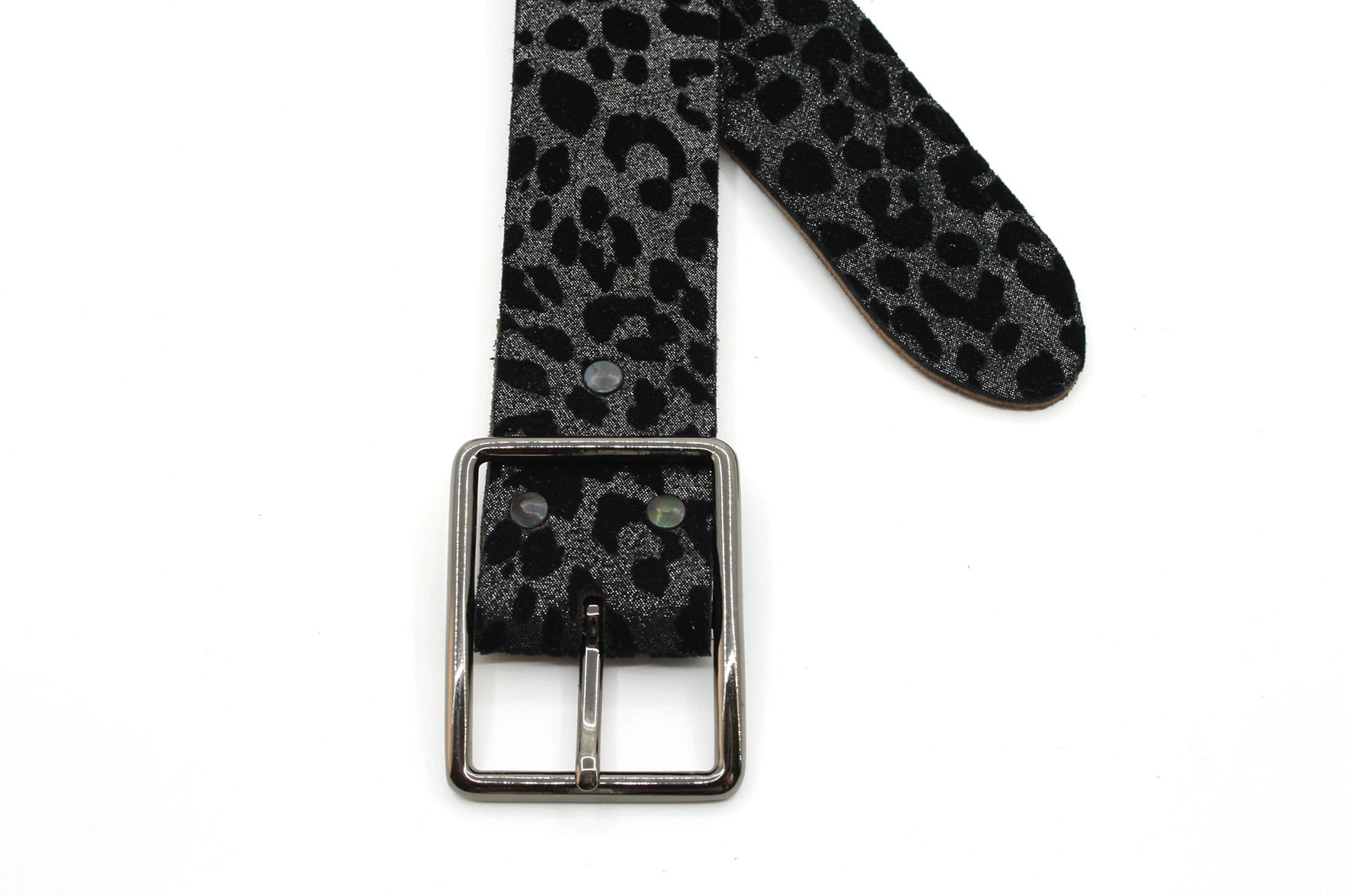 Geef je outfit een opvallende twist met deze stijlvolle zwart/fluwele riem met luipaardprint. Gemaakt van hoogwaardig leer straalt deze riem luxe en karakter uit. Met een breedte van 4cm. en een rechtgesneden ontwerp biedt hij een strakke en moderne look. De vierkante zilverkleurige, nikkelvrije gesp voegt een speels en stoer detail toe. Perfect te combineren met jeans of chino’s en een rokje of jurkje voor een trendy en stijlvolle, chique uitstraling. Een echte eyecatcher die elke outfit net dat beetje extra geeft. -