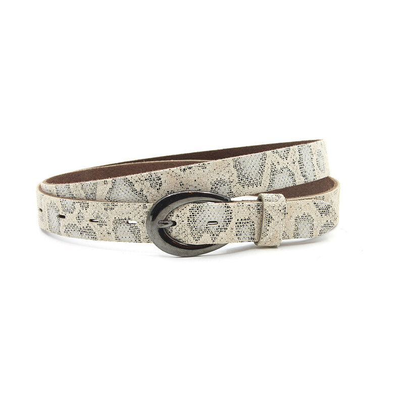 Eenvoudige soepele beige damesriem 2,5cm. breed met een leuk patroon.