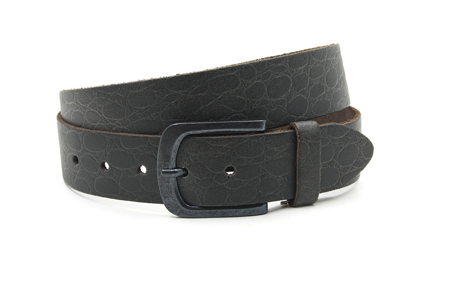 Stijlvolle damesriem in donkergrijs met een subtiele, fraaie print.